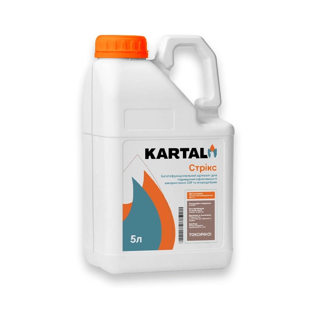 | Механізм дії | Стрікс рекомендується застосовувати для підвищення ефективності використання гербіцидів, фунгіцидів, інсектицидів та мікроелементів на польових, плодових та спеціальних культурах. Восковий наліт рослини, покриви шкідників і навіть гриби-патогени мають водовідштовхуючі властивості. Це спричиняє стікання крапель робочого розчину з об’єкту. Стрікс забезпечує краще зчеплення пестициду з об’єктом та зменшує стікання. Препарат, капсульований ад’ювантом, поширюється на листковій поверхні у 8-16 разів більше, ніж якби він знаходився у краплі води аналогічного розміру, а також краще проникає у рослину. Завдяки олійній основі та швидкому прилипанню, Стрікс забезпечує стійкість пестициду до змивання опадами вже за декілька хвилин після обробки, а також захищає пестицид від втрат внаслідок випаровування, розкладу від фотодеградації та летючості. |